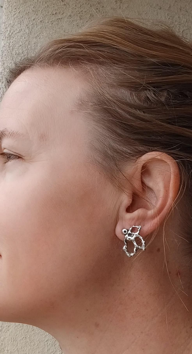 Entièrement façonnées à la main dans mon atelier, ces puces d’oreilles en argent massif incarnent la beauté du geste et l’élégance du naturel.
