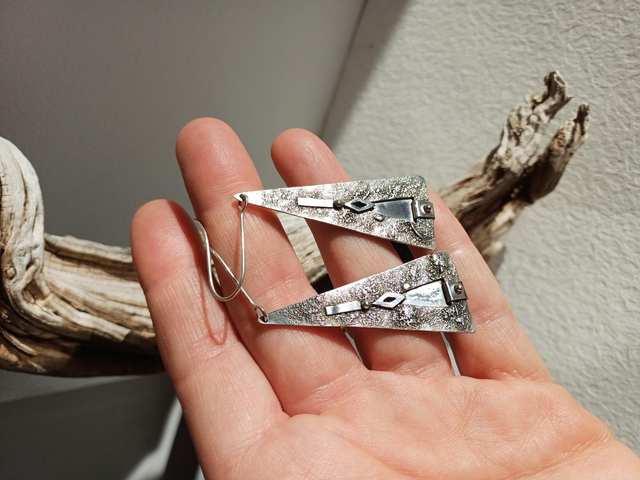 Au centre, une surface polie miroir renvoie la lumière selon le mouvement. Autour, l’argent est texturé à la limaille puis oxydé, offrant un aspect granuleux, irrégulier, presque pailleté, comme patiné par le temps.
