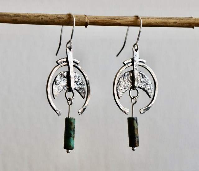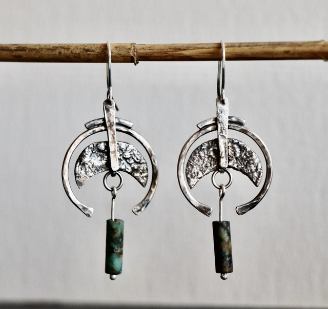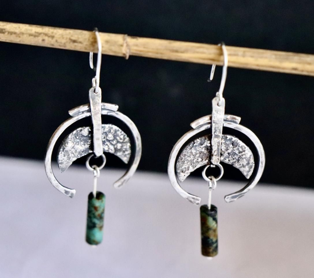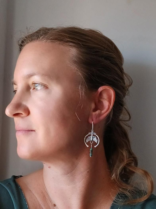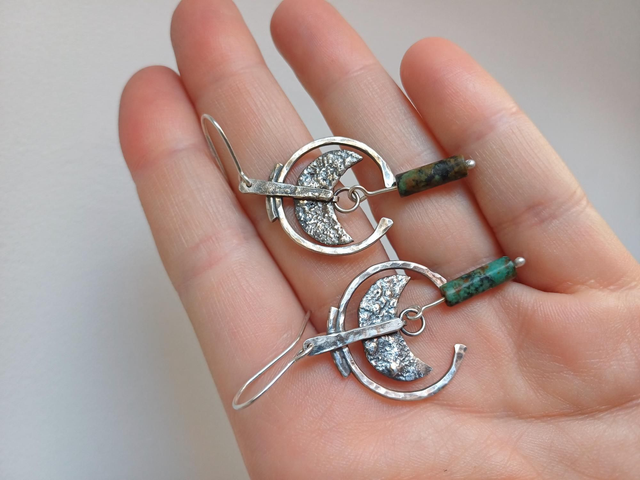Entre éclat lunaire et équilibre graphique cette paire en argent s'est construite au fil du geste. Tout a commencé par une demi-lune réticulée, texturée à chaud jusqu’à révéler un relief minéral.