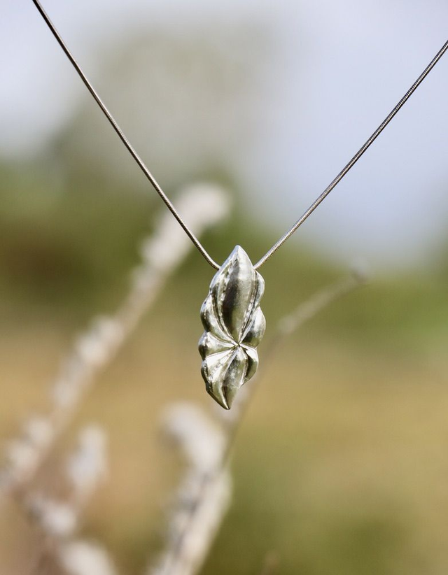 Le pendentif Elioré en argent est une pièce unique, née du travail patient du métal par ciselure et repoussé.
